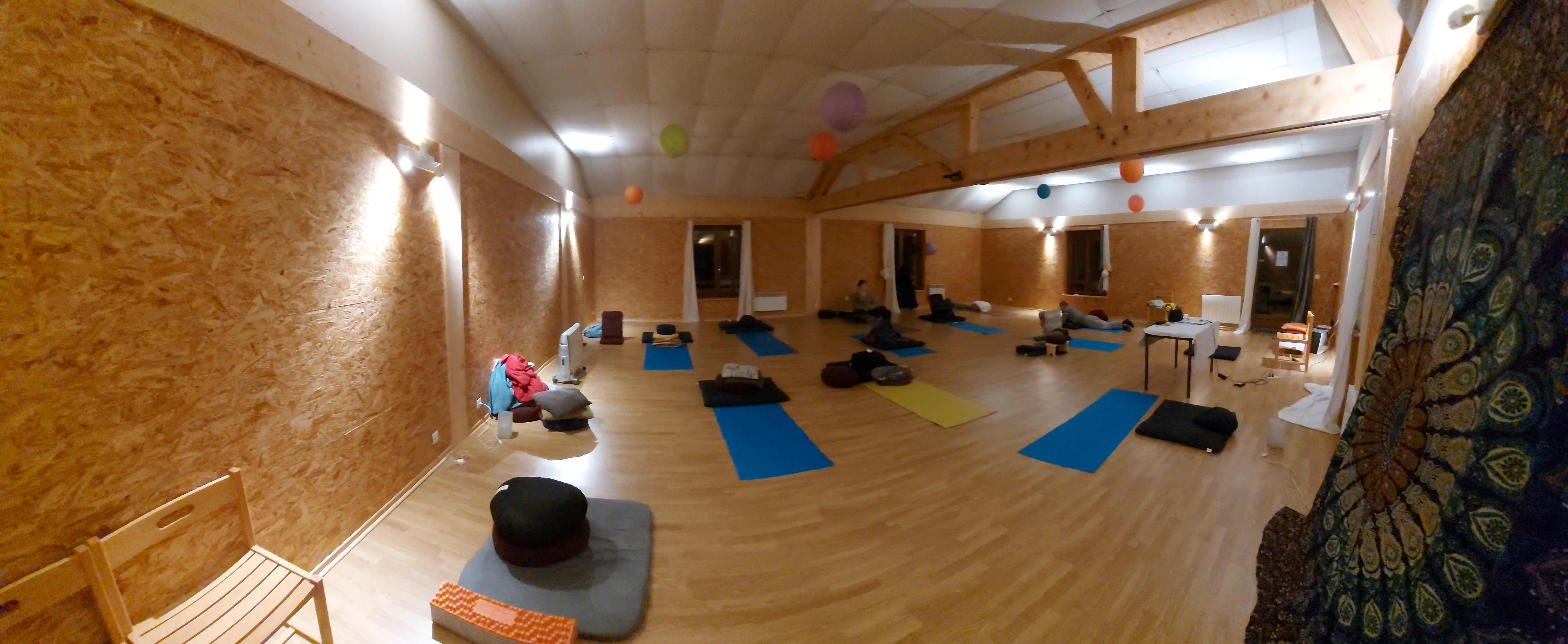Lieu et cadre agréable, la salle du bas permettant une pratique sereine tout en pouvant acceullir plus de 40 à 50 personnes suivant les activités. Les parties logements sont sommaires mais suffisantes. Les consignes des repas, nous avions demandées végétarien, ont éré parfaitement respectées. Le petit déjeuner, buffet, est suffisant. Peut-être prévoir plus d'accompagnements pour les gens souhaitant éviter le gluten... Pour les autres repas, c'est correct. Les idées sont bonnes, la réalisation cantines peut surprendre mais n'est pas désagréables pour autant. Nous reviendrons, c'est presque certain !!