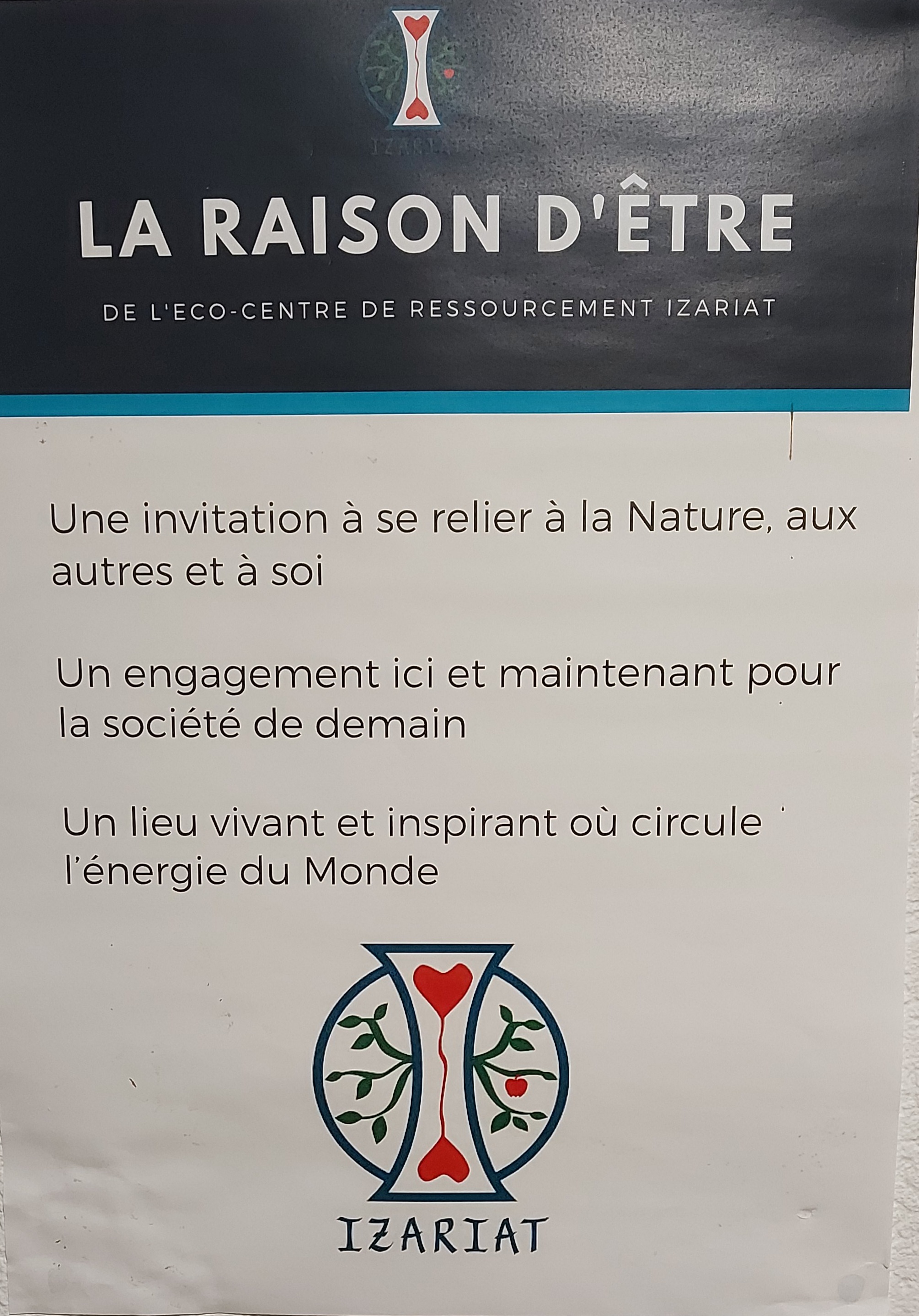 Endroit privilégié sur terre... Par sa raison d'être... Chambres propres et agréables... Accueil le cœur sur la main... L'ensemble a permis au stage (retraite silencieuse de 10 jours de méditation) de se derouler dans les meilleurs conditions... Les residants étaient aux petits soins avec nous : merci pour votre bienveillance et votre empathie... Et la nourriture : vegetarienne aux produits frais et cuisinées avec goût et créativité (je vous ai même chopper qqies recettes ;-) ).. Un grand merci et.longue vie a Izariat !
