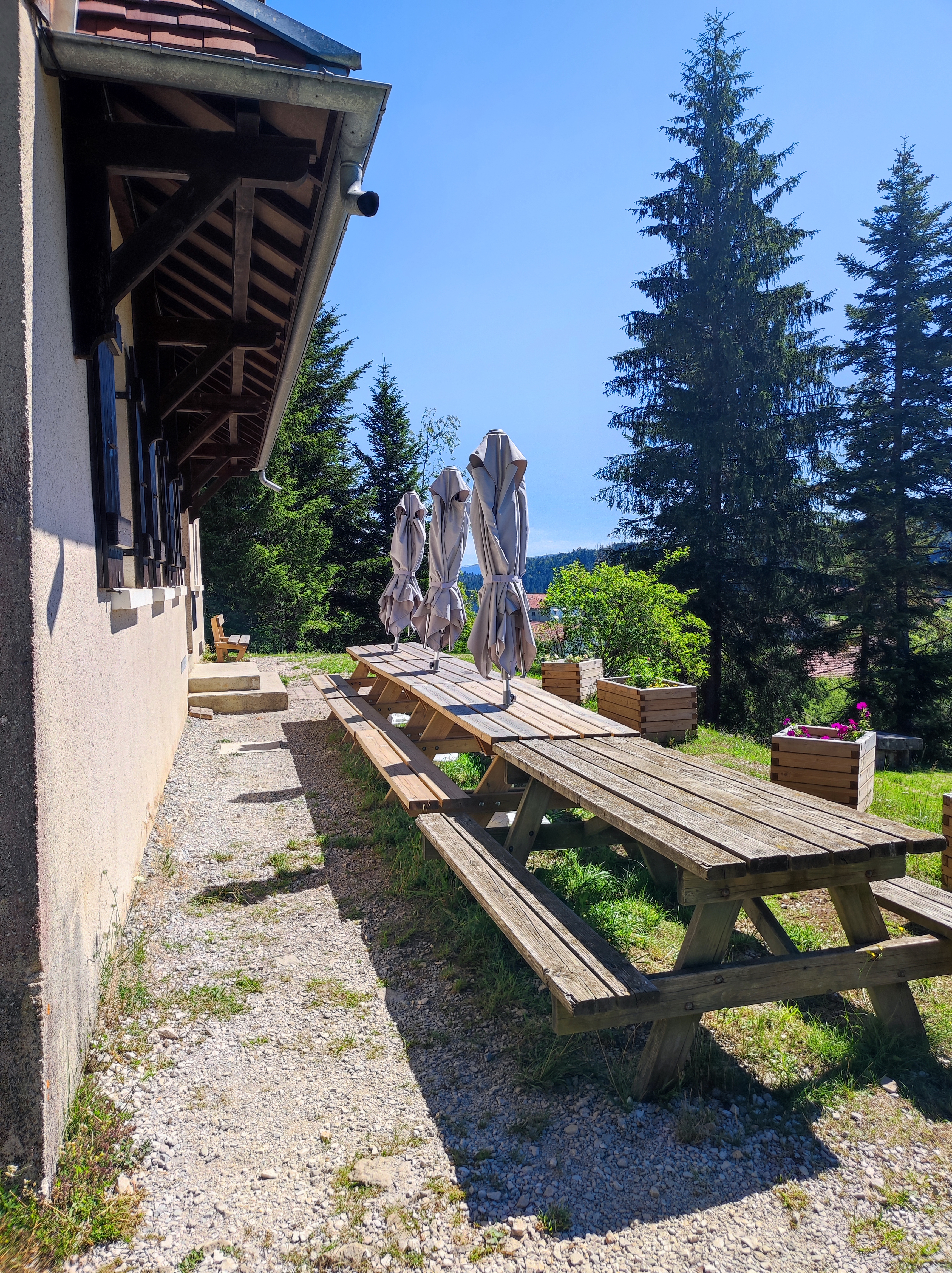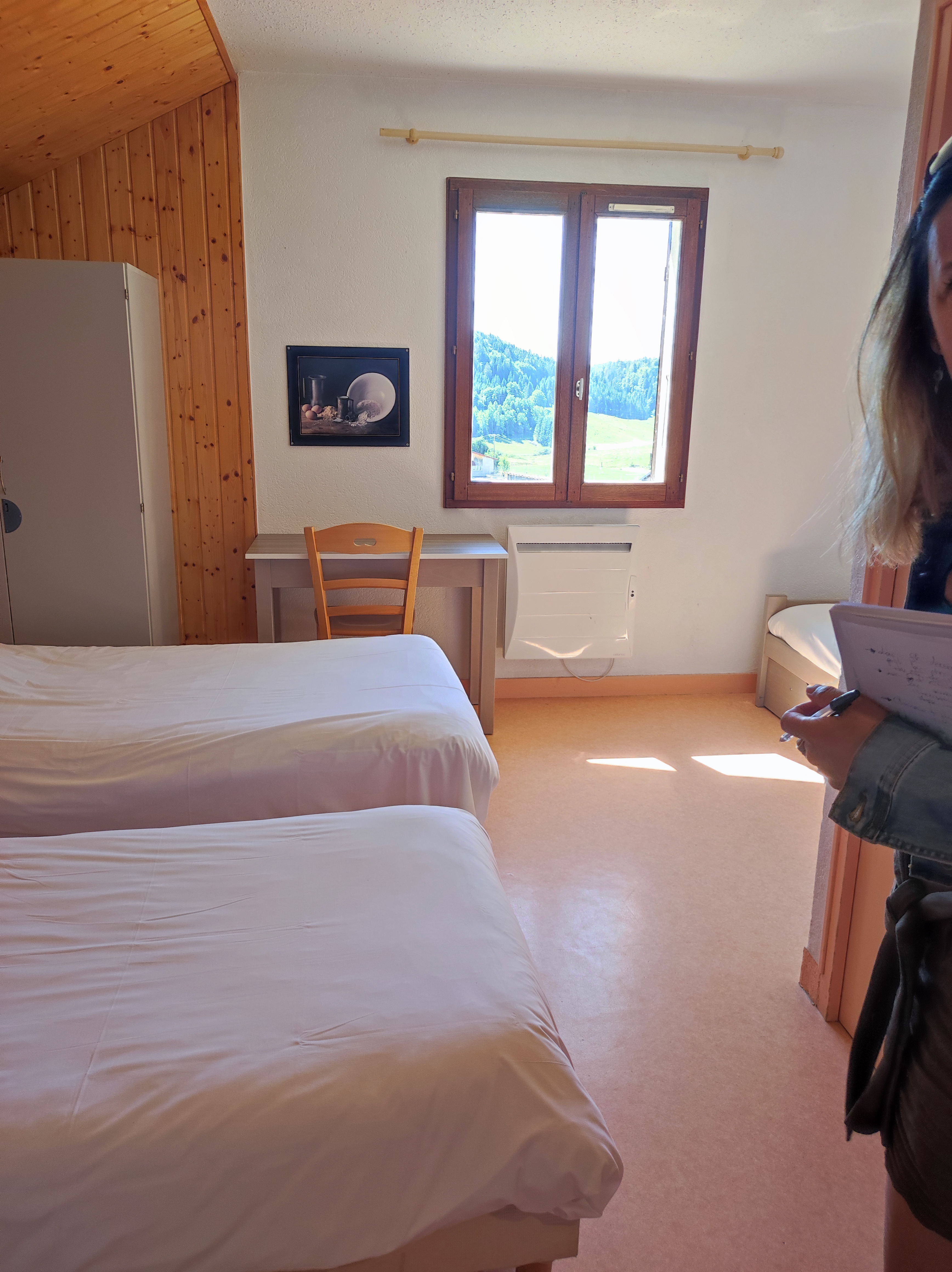 Superbe chalet spacieux, avec ses 11 chambres toutes équipées de douche-lavabo-wc. Nous étions 20 randonneurs qui avons apprécié les beaux paysages verdoyants du Jura. Seul bémol de notre séjour de 3 jours du mardi au jeudi : - horaires très restrictifs : heure d’arrivée 17 h – heure de départ 11 h - trop d’interlocuteurs qui se contredisent : « oui » vous avez accès à la piscine et se faire refouler car vous n’avez pas accès - Wifi inexistante